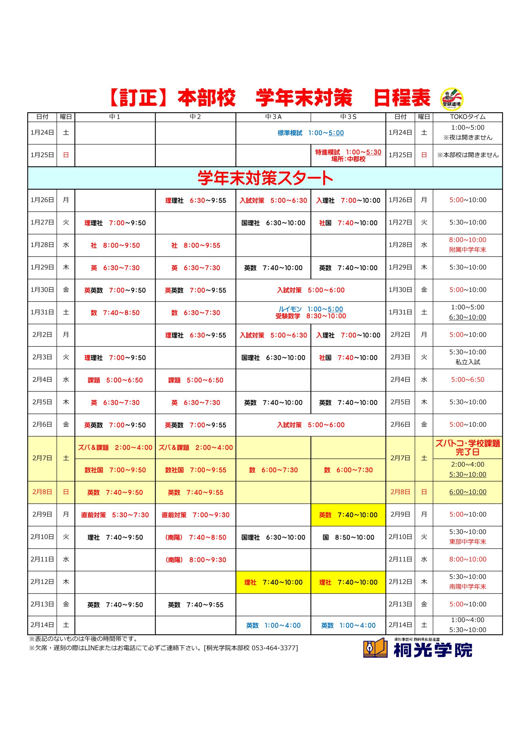 私立入試の生徒は、最後の予行演習です。