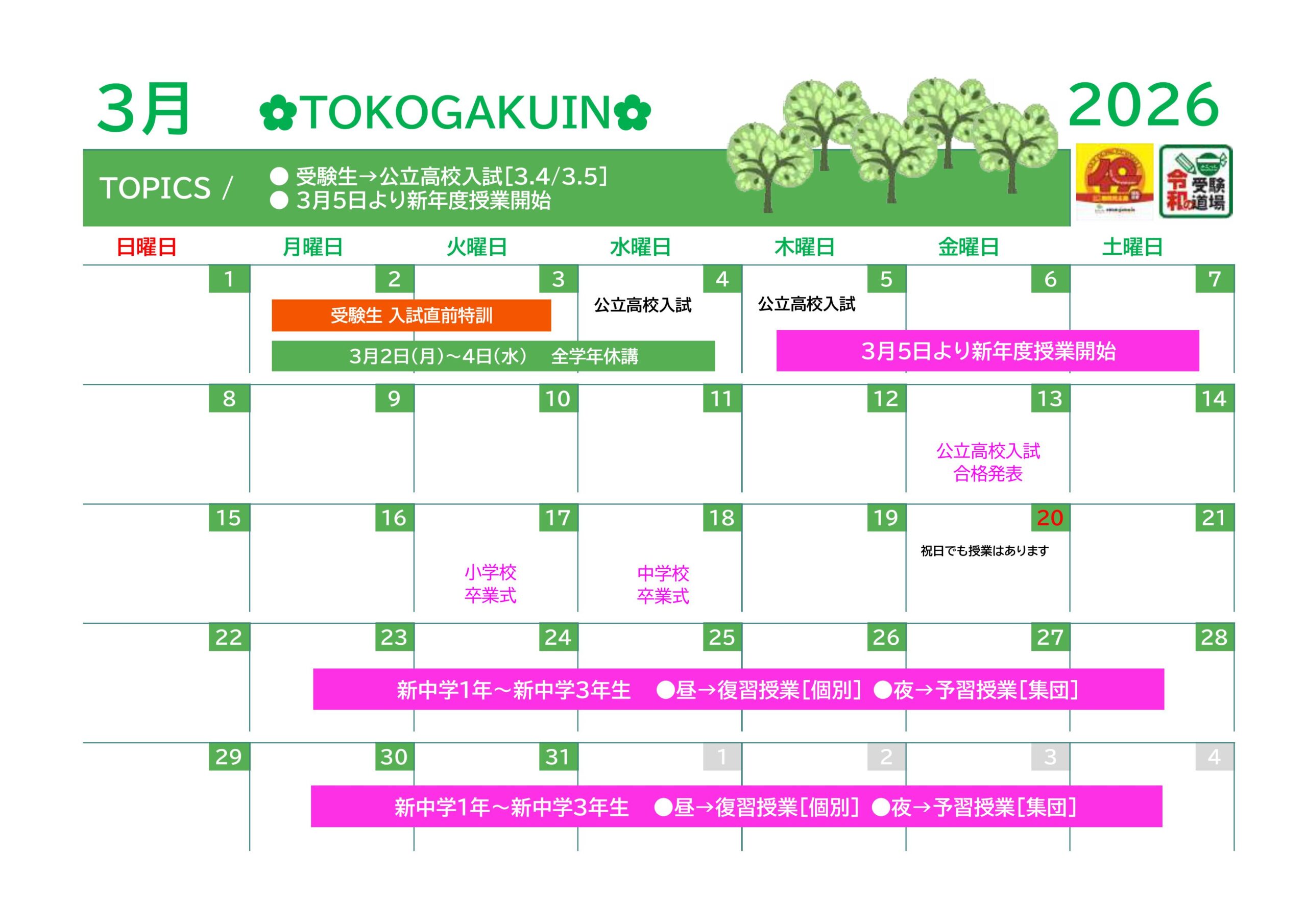 新年度スタートは3月5日(木)となります。