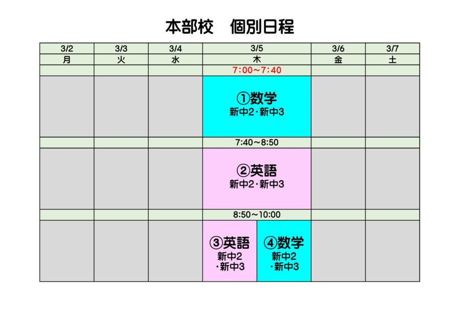 来週(3/9~)の個別日程は3/5(木)にブログ&LINEでお送りします。
