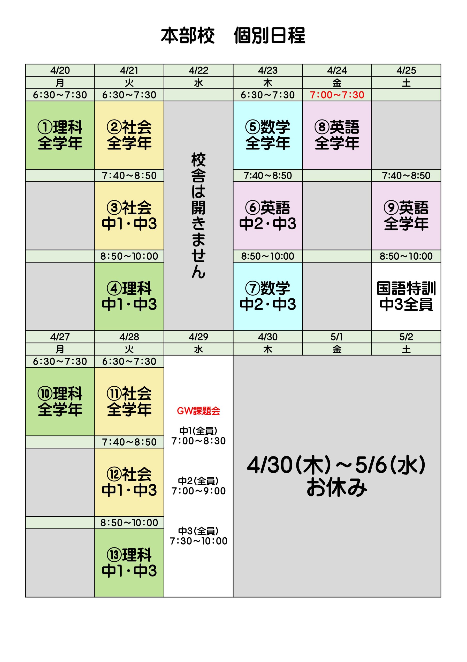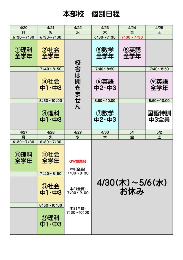 来週の4/29(水)はGWに出される課題を進めます。(学校も、桐光もどっちもOK👌)