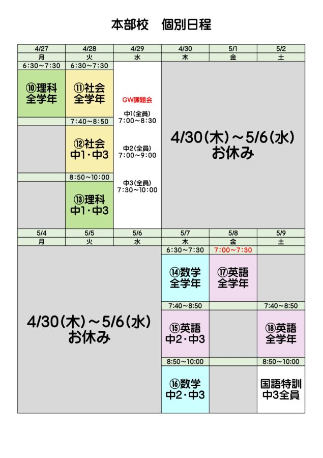 生徒も教師もソワソワしているので、今日から授業で予定を聞きまくりたいと思います。