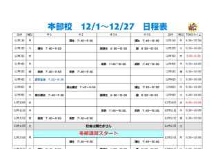 BLOG2025/12/0112/1~12/13の個…個別日程を更新しました。 黄色のところ(12/4・12/5)は追加の授業です。 フォーム、またはお子様か…