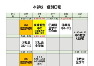 BLOG2026/02/16個別日程 植原こんにちは。植原です。 今週と来週の個別授業を掲載いたします。 中2中1の生徒にも伝えていますが い…