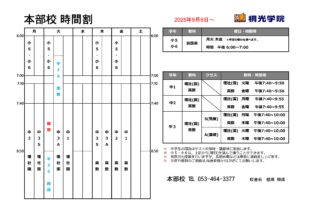 2025/09/08本部校 時間割もっと見る