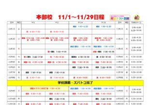 BLOG2025/10/2311月 月間スケジュール…11月の月間スケジュールが完成しています。 11月は勝負の定期テストに向けて万全の準備をしていきます。 …