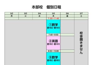 BLOG2026/03/04本部校 3/5~4/4の…3/23(月)から春期講習スタートです。 新学年に向けて予習!!だけではなく”復習”もしていきます。 塾…