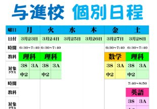 BLOG2026/03/22今週の予定 稲田春期講習がスタートします。 お昼からずっと校舎にいますので,ブログ,ライン等が後手になると思います。ご了…