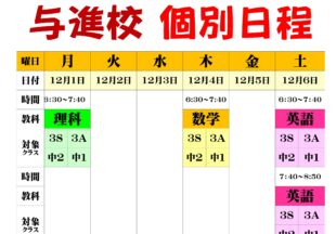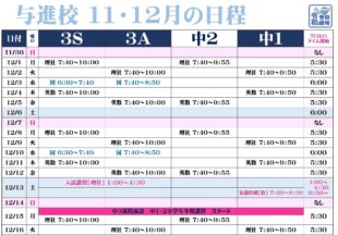 BLOG2025/11/23今週の予定 稲田中3は,祝日である月曜日には学調対策が,木曜日には本番があります。 全学年で木・金は休講となります。土曜…
