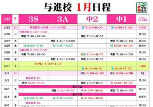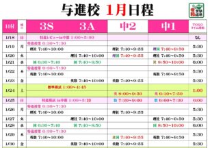 BLOG2026/01/23今週の予定 稲田入力ミスで今週の「今週の予定」がアップされませんでした。今週末は.中3は標準模試に特進模試,中1・2は土…