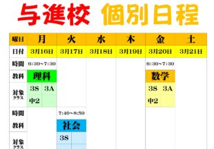 BLOG2026/03/163/16(月)~3/28…こんにちは、英語担当の柴田です。今週も個別授業は4教科揃っています。また、来週から春期講習があります。講…