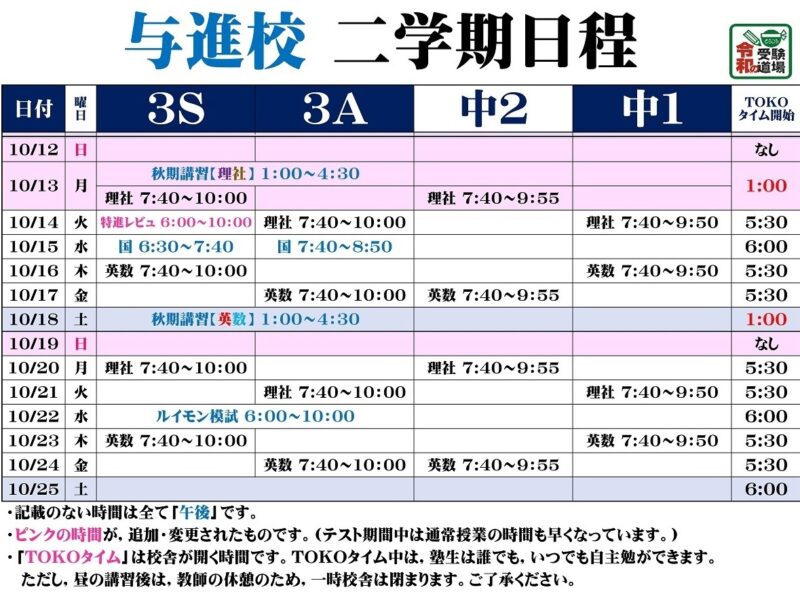 せっかくの祝日スタート!お昼から校舎を開けて待っています。