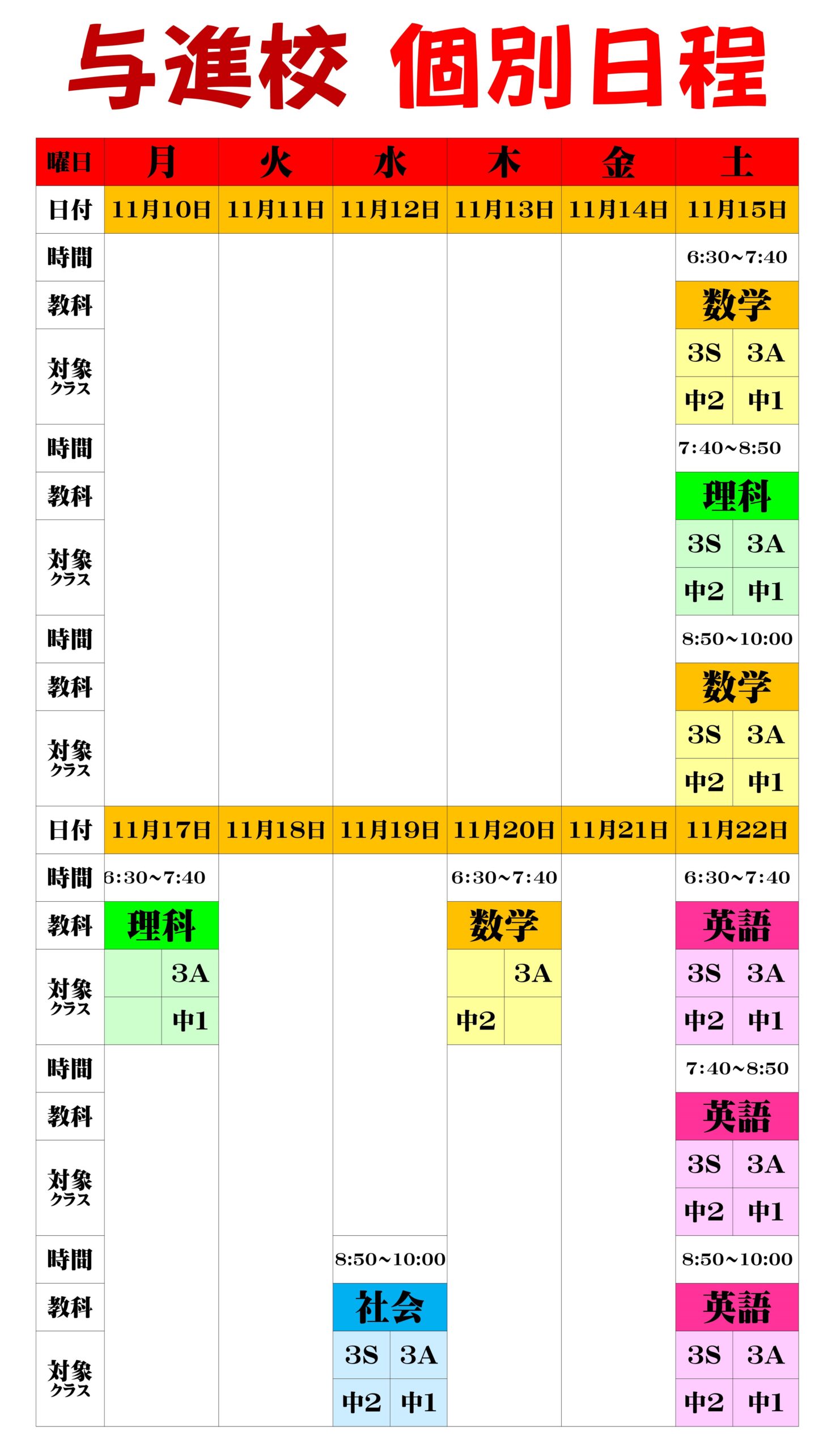 こんにちは、英語担当の柴田です。中1、2生のみなさんは期末テストが終わりほっとしているところだと思います。次のターゲットは1月に実施される学調テストです。今まで学習したことがすべて出される実力テストです。今からしっかりと準備しておきましょう。