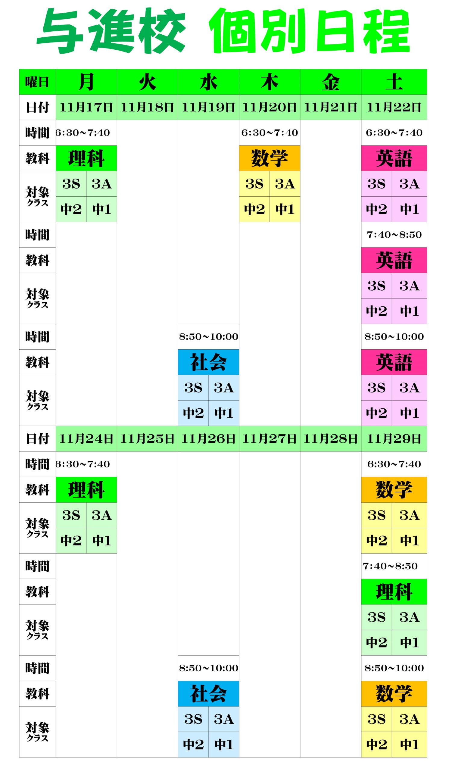 こんにちは、英語担当の柴田です。中3生はいよいよ来週は学調テストです。個別授業に参加して対策をしましょう。