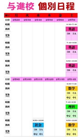 こんにちは、英語担当の柴田です。今週は中1、2のみなさんは学年末テストがあります。学年のよい締めくくりができるよう頑張りましょう。また、2/7(土)は中3生のみの英語個別授業になります。