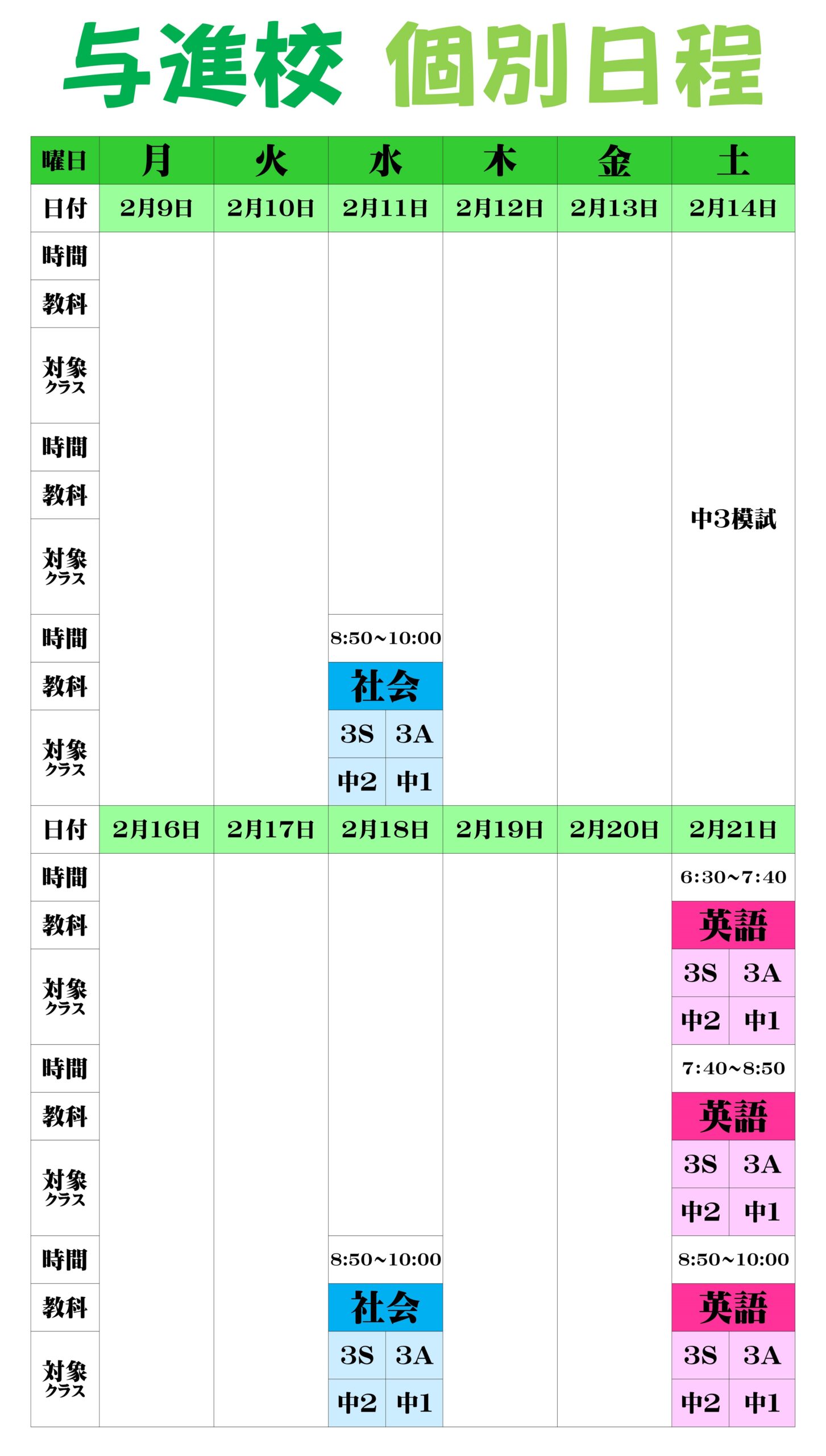 こんにちは、英語担当の柴田です。中3生のみなさんは、あと約3週間で公立高校の入試です。最後まであきらめずに頑張りましょう。