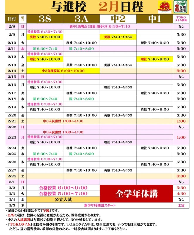 月曜日からの一週間は教師が「特別配置」の週で,「教科」の変更があります。ご確認ください。