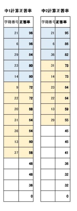 中3Aクラスには修学旅行前に中1、中2の計算力テストをしました。