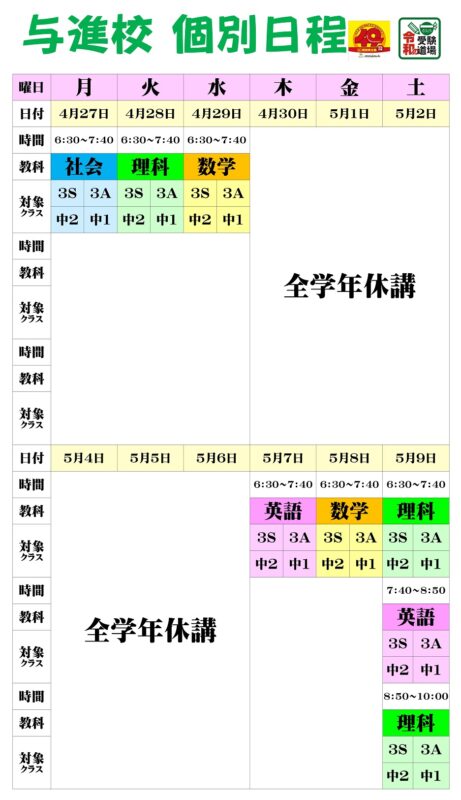 GW休講を挟むので,数は絞られますが,是非お申し込みください!