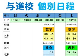 BLOG2025/12/291/5(月)~1/17(…こんにちは、英語担当の柴田です。いよいよ新年が始まりました。中3生のみなさんは、あと2ヶ月です。少しでも…