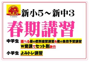 BLOG2026/02/24春期講習受付スタート! …新小5から新中3の春期講習の受け付けがスタートしました!特に新中3は2クラスになり,通いやすくなっていま…