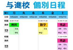 もっと見る10月の月間スケジュールが完成しています。 10月中旬からは11月の定期テストに向けて準備をしていきます…