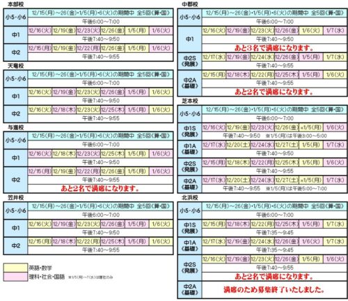 冬期講習と両方受ける際は,恐れ入りますが両方のフォームからご連絡ください。