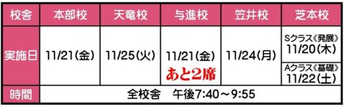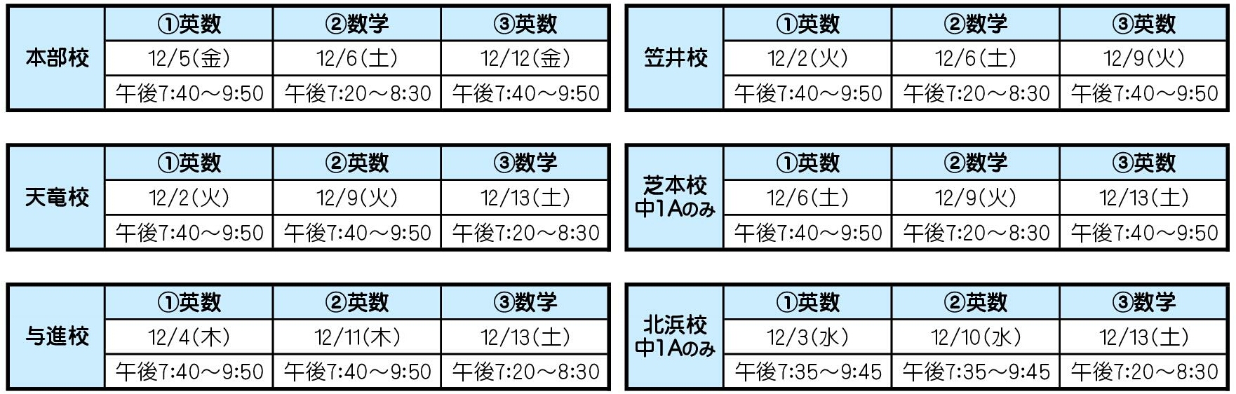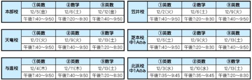 ・各校舎日程(クリックで拡大) ※中郡校は実施しません。