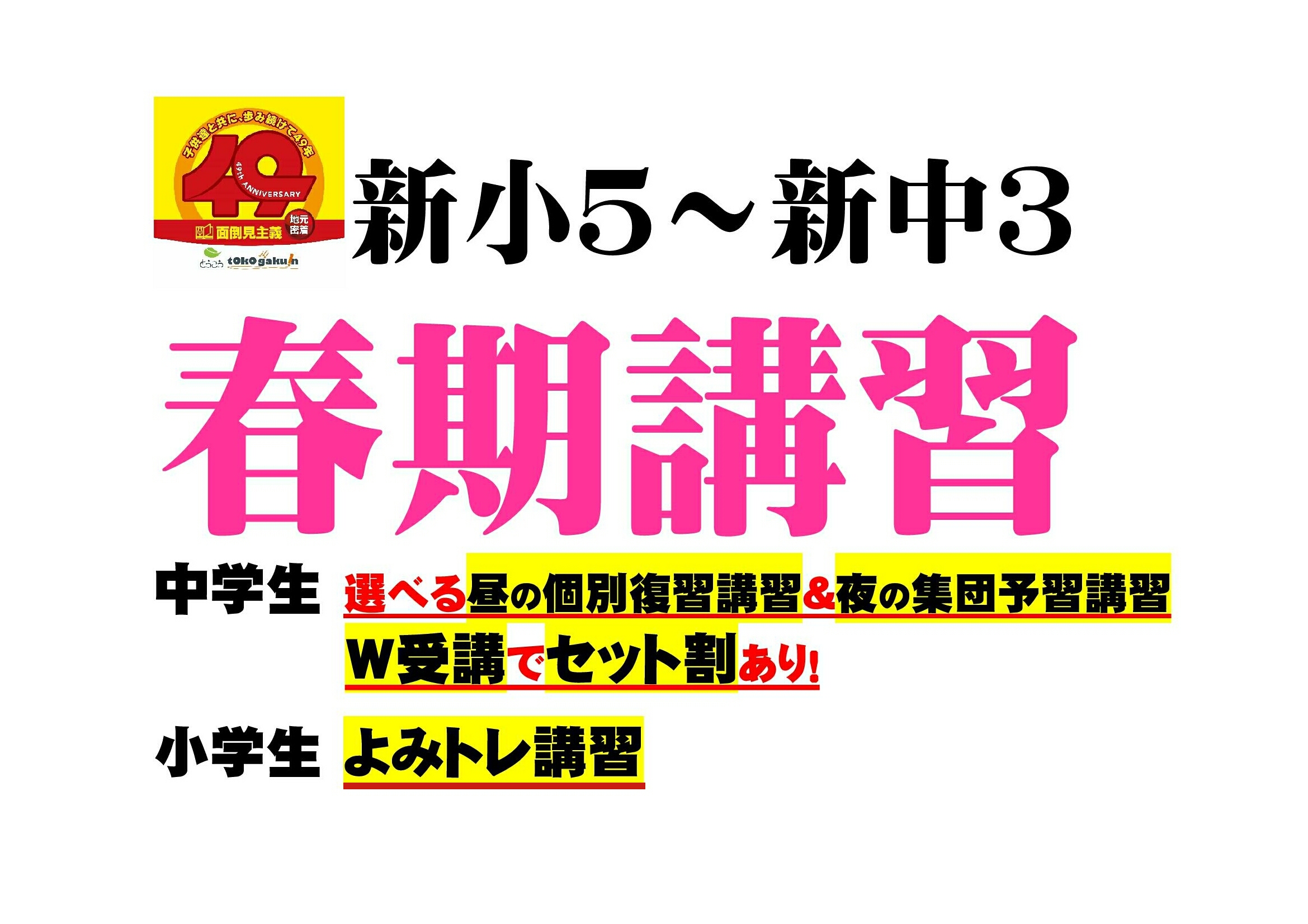 日程:上記期間のうち,新中1は8コマ,新中2・新中3は10コマお選びいただけます。